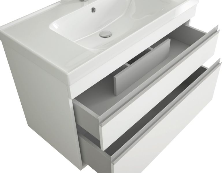 Коллекция Grace Plus под новый керамический умывальник Grace 60/70 см. Модель имеет два ящика – верхний оснащен встроенным органайзером.