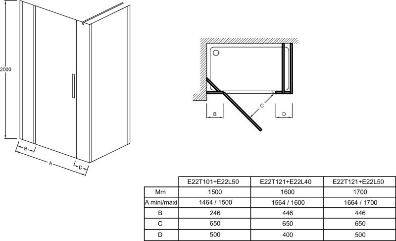 Душевая дверь Jacob Delafon CONTRA E22T101-GA 100*200