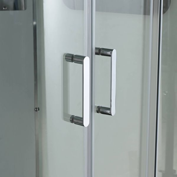 Стильная душевая кабина AvaCan сочетает в себе высокую функциональность, практичность и надежность. При изготовлении применяется безопасное закаленное стекло, надежно фиксируемое алюминиевым профилем. Профиль сделан из алюминия повышенной прочности. Сборка без силикона (увеличивает срок службы, защищает от протечек), внутренняя сборка (облегчает установку и ревизию; позволяет установить в ограниченном пространстве и обойтись без демонтажа других сантехнических приборов), смеситель резьбовой (без хомутов). Двойные металлические ролики дверей (распределение нагрузки на два ролика, увеличивают срок службы). Душевая штанга(позволяет регулировать по высоте ручную лейку), ручная арома-лейка с витамином С (картридж в комплекте,есть возможность замены или удаления картриджа), полочки(из стекла, с ограничителем), сифон с гидрозатвором.