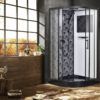 - низкий (15 см) акриловый поддон черного цвета- сифон с гидрозатвором, крышка сифона в цвет поддона- задние стекла: закаленное крашеное белое стекло, закаленное крашеное декорированное стекло (5 мм)- передние стекла: закаленное прозрачное стекло с покрытием "easy clean" (5 мм)- профиль матовый черный- смеситель матовый черный- душевая многофункциональная лейка со шлангом чёрного матового цвета- держатель лейки чёрный матовый- полочка для шампуня чёрная матовая- двойные (спаренные) верхние и нижние ролики чёрного цвета- верхний душ с прорезиненными сопламиРАЗМЕР: 100х100х210 см