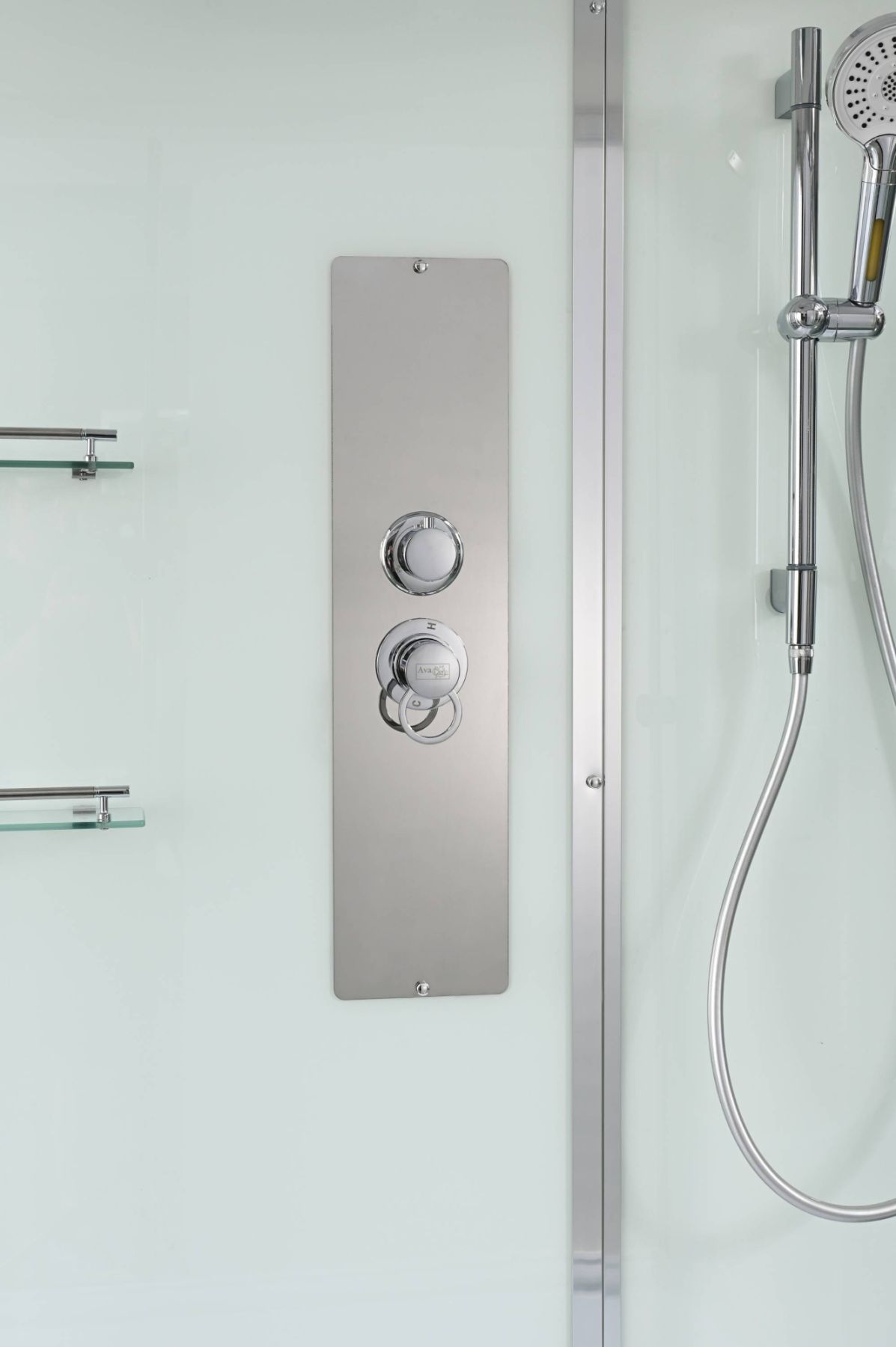 Стильная душевая кабина AvaCan сочетает в себе высокую функциональность, практичность и надежность. При изготовлении применяется безопасное закаленное стекло, надежно фиксируемое алюминиевым профилем. Профиль сделан из алюминия повышенной прочности. Сборка без силикона (увеличивает срок службы, защищает от протечек), внутренняя сборка (облегчает установку и ревизию; позволяет установить в ограниченном пространстве и обойтись без демонтажа других сантехнических приборов), смеситель резьбовой (без хомутов). Съемный экран поддона (позволяет осуществлять подключение и ревизию сифона).Двойные металлические ролики дверей (распределение нагрузки на два ролика, увеличивают срок службы). Душевая штанга(позволяет регулировать по высоте ручную лейку), ручная арома-лейка с витамином С (картридж в комплекте,есть возможность замены или удаления картриджа), полочки(из стекла, с ограничителем), сифон с гидрозатвором.