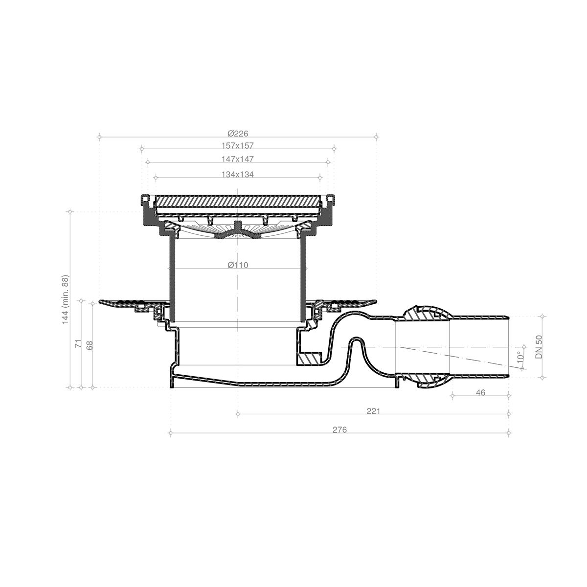- Дизайн: Black glass (белое закаленное стекло), - Рамка -"Хром глянец". - Базы слива: 1 - с 1 выходом, 4 - S-образная. - Материалы: металлические детали - нержавеющая сталь AISI 304 SS, корпус - ABS - Технические характеристики: размеры решетки 100х100 мм и 150х150 мм, - пропускная способность 48 л/мин, D=50 мм, - поворот базы 360°, - минимальная высота монтажа - 78 мм (для баз 1,2,3), 71 мм (для базы 4), 69 мм (для базы Vertical), - гидрозатвор. 10х10 - комбинированный затвор15х15 - гидрозатвор