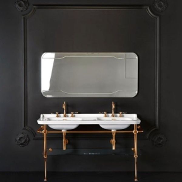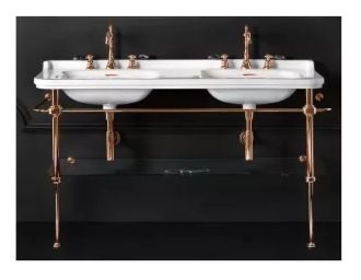 Консоль для раковины Kerasan Waldorf 9195K3br бронзаKerasan Waldorf 9195K3 Консоль для раковины на 150 см. Металлическая структура для раковины 150 см, со стеклянной полочкой, цвет бронза (из 2-х коробок: арт. 919593+920293 и 919801). Подходит к 4143K1 раковина керамическая двойная 150х55 см, c 1 отверстием под смеситель на чашу, белая.