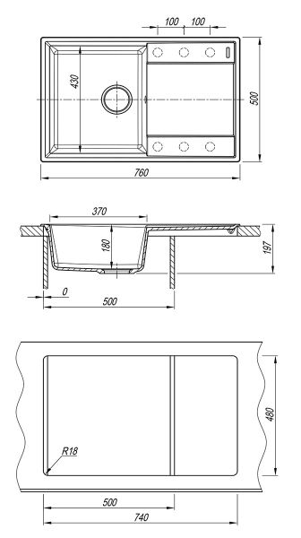 - Отверстия под смеситель:нет