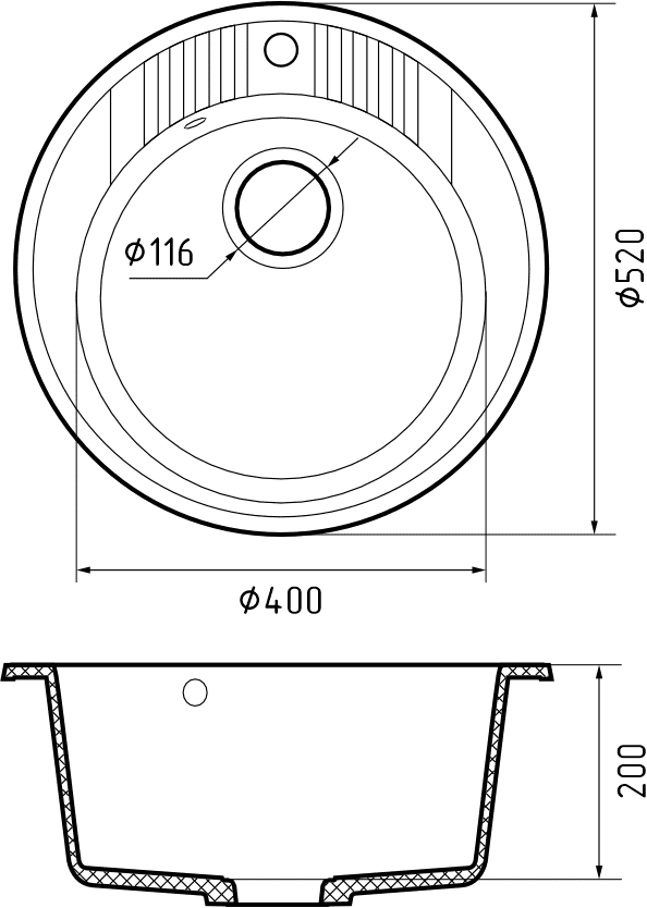 Размер чаши: Ø 400 * 200 мм