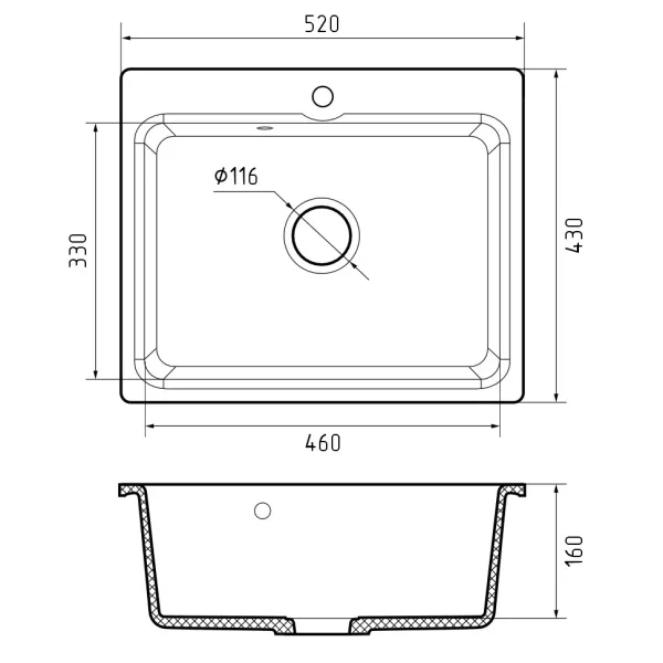 В мойке предусмотрено отверстие для установки смесителя. Используя алмазную коронку, можно сделать дополнительные отверстия для дозатора жидкого мыла или сифона с полуавтоматом.