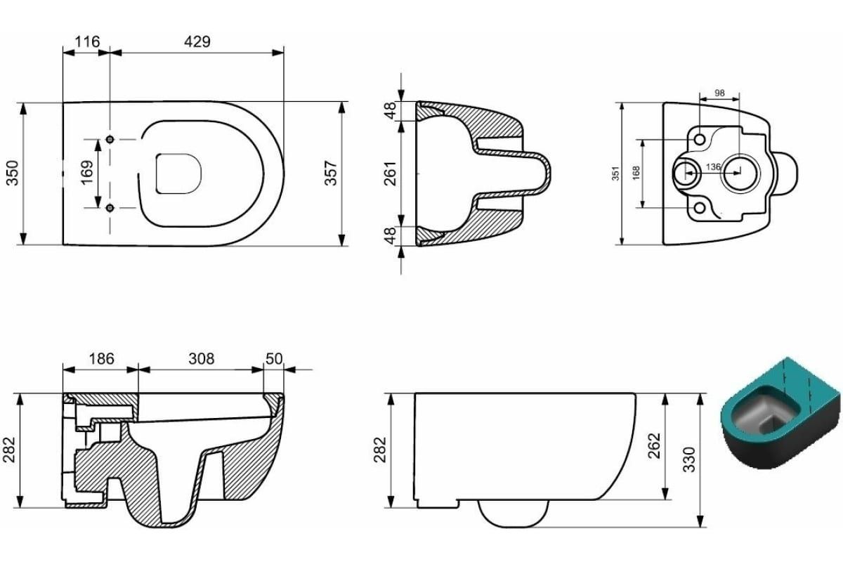 - Укороченный унитаз:нет