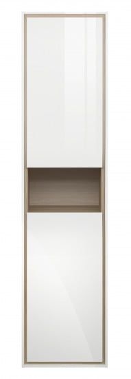 LOUNA – это коллекция, отвечающая последним тенденциям рынка: сочетание чистоты белого цвета и натурального дерева. Основной отличительной особенностью коллекции является её дизайн – сочетание белого с деревом, фрезерованная ручка, выдвижной ящик и удобная открытая полка для хранения. Пенал оборудован стеклянными полками и открытой нишей. Зеркала в коробе ЛДСП оборудованы сенсорной подсветкой.