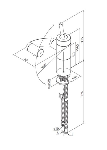 • Высота смесителя: