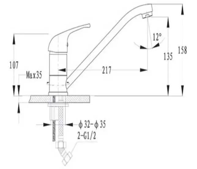 - Высота смесителя:15.8