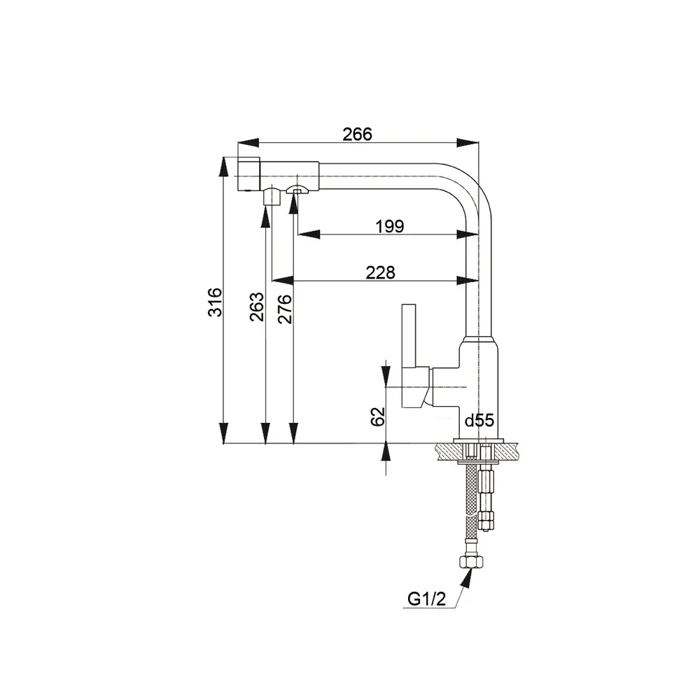 • Гибкий излив:
