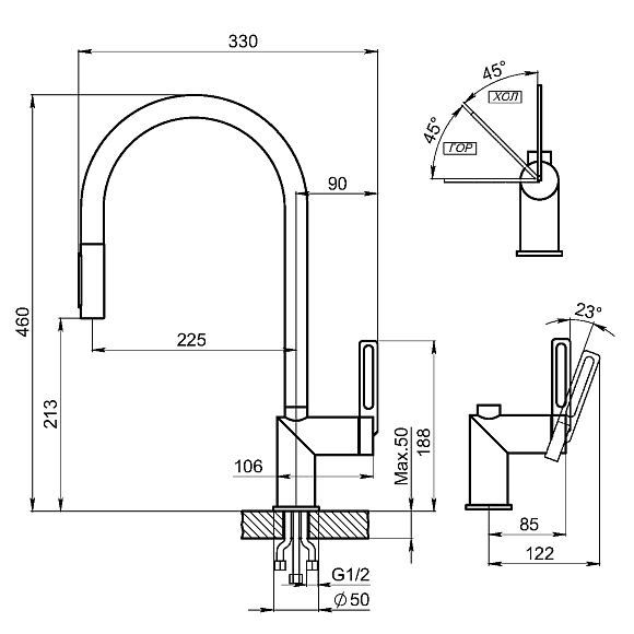 - Высота смесителя:46