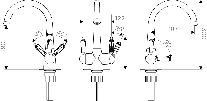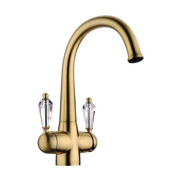 • Ручки смесителя украшены кристаллами Swarovski; • Цвет: 022.Античная Латунь • Технология PURE LIFE®: Подключение фильтра для очистки воды. Фильтрованная вода подается по отдельной трубке и не смешивается с водопроводной водой; • Высококачественная латунь сохранит воду чистой и здоровой; • Аэратор произведен из специального полимерного материала, благодаря чему на нем никогда не появится известкового налета и ржавчины; • Коробка внутри проложена поролоном, который обеспечит сохранность изделия при транспортировке; • Полный набор креплений, соединительных шлангов, подробная инструкция и гарантийный талон в комплекте