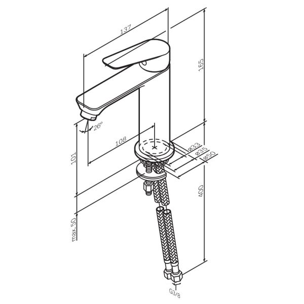 Идеальная геометрия разработанная по стандарту SA (Smart Angle) – математически выверенное соотношение высоты смесителя длины излива и наклона корпуса для удобного использования на раковине размером от 50 до 120 см.