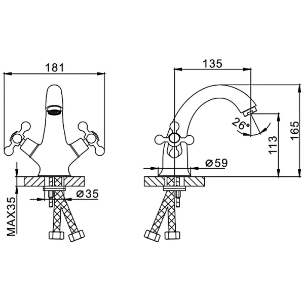 • Высота смесителя: