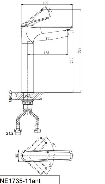 Смеситель для раковины RUSH арт. NE1735-11ch с металлической ручкой из коллекции Nevis изготовлен из высококачественной латуни и имеет рычажное управление.В смеситель установлен картридж D-35 с керамическими пластинами. Высота смесителя 323 мм. Излив литой неповоротный 199 мм. Высота излива до аэратора 240 мм. Аэратор изготовлен из пластика с нержавеющим корпусом, угол наклона - 15 гр. В комплекте универсальная присоединительная группа для установки на горизонтальную поверхность, гибкая подводка с латунными гайками 40 см - 2шт, фум-лента, индивидуальный пакет, паспорт, гарантийный талон.