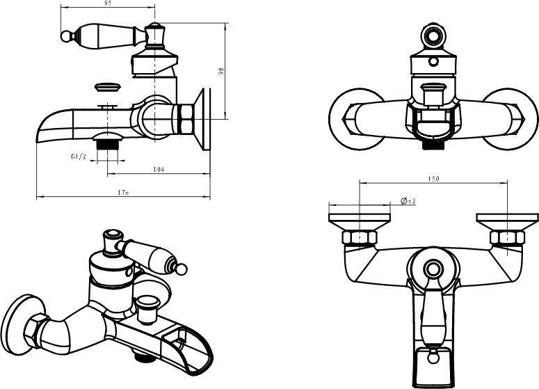 Смеситель Boheme Vogue 223 для ванны с душем важнейший предмет сантехники в любой ванной комнате. Смеситель Boheme Vogue с легкостью можно установить на любую ванну. Однорычажные смесители – это простота и удобства эксплуатации, так как настройка напора и температуры воды производится при помощи регулировки одного рычага.Латунь, керамика из которой произведен смеситель Boheme Vogue 223 отличается высокой прочностью и произведена без использования вредных компонентов. длина излива 17.6 см - это оптимальные параметры у смесителя Boheme 223, предотвращающие разбрызгивание. Излив Boheme Vogue так же оснащен функцией вращения, что значительно упростит использование смесителя. Конструкция модели Boheme Vogue позволяет прекрасно установить смеситель на стену. Смеситель для ванны Boheme 223 выполнен в стиле ретро, что великолепно прослеживается в его форме. Марка Boheme, родиной которой, является Италия, создает смесители качества с высокотехнологичного оборудования, благодаря чему смесители отличаются долговечностью и надежностью. Смеситель Boheme Vogue 223 для ванны с душем принесет комфорт, как в компактную ванную комнату, так и в большой санузел.