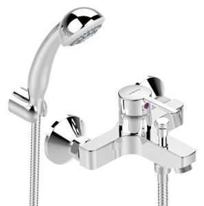 LOGIK Смеситель для ванны/душа, душевой гарнитур в комплекте (душевая лейка Ø70 мм, металлический шланг 1500 мм, держатель для лейки).