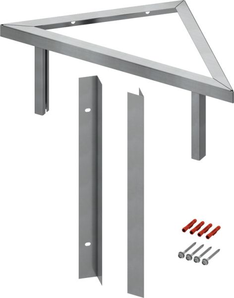 Для крепления модулей TECEprofil на массивной или облегченной стене под углом 45°. К стене требуется крепить только одну сторону. Комплектация блока в сборе: • Монтажная балка с оцинкованной поверхностью, регулировка высоты для адаптации к рисунку плитки • Легкий оцинкованный настенный профиль для крепления панелей • Крепежные элементы для монтажа на стене
