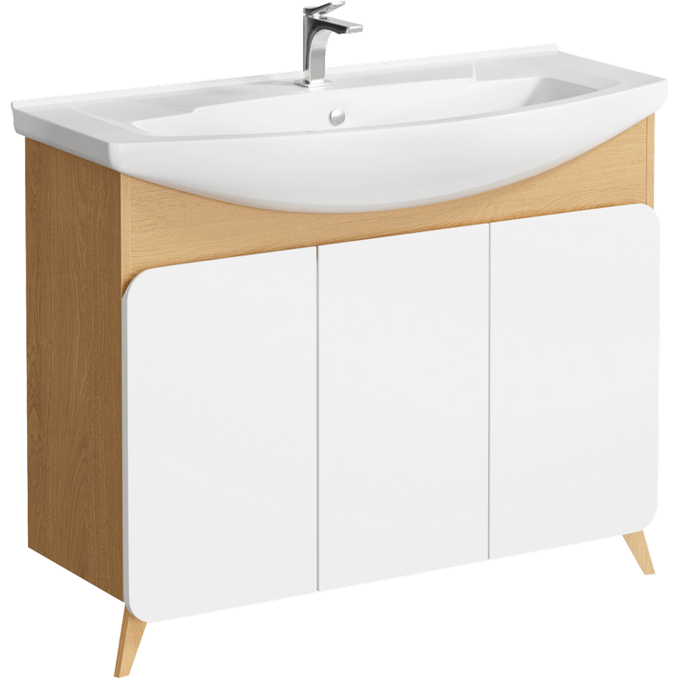 Тумба под раковину Aqwella Basic BAS0110DZ 105 смНапольная тумба 105 см с тремя дверцами с умывальником