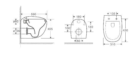 • Прилегание унитаза к стене: