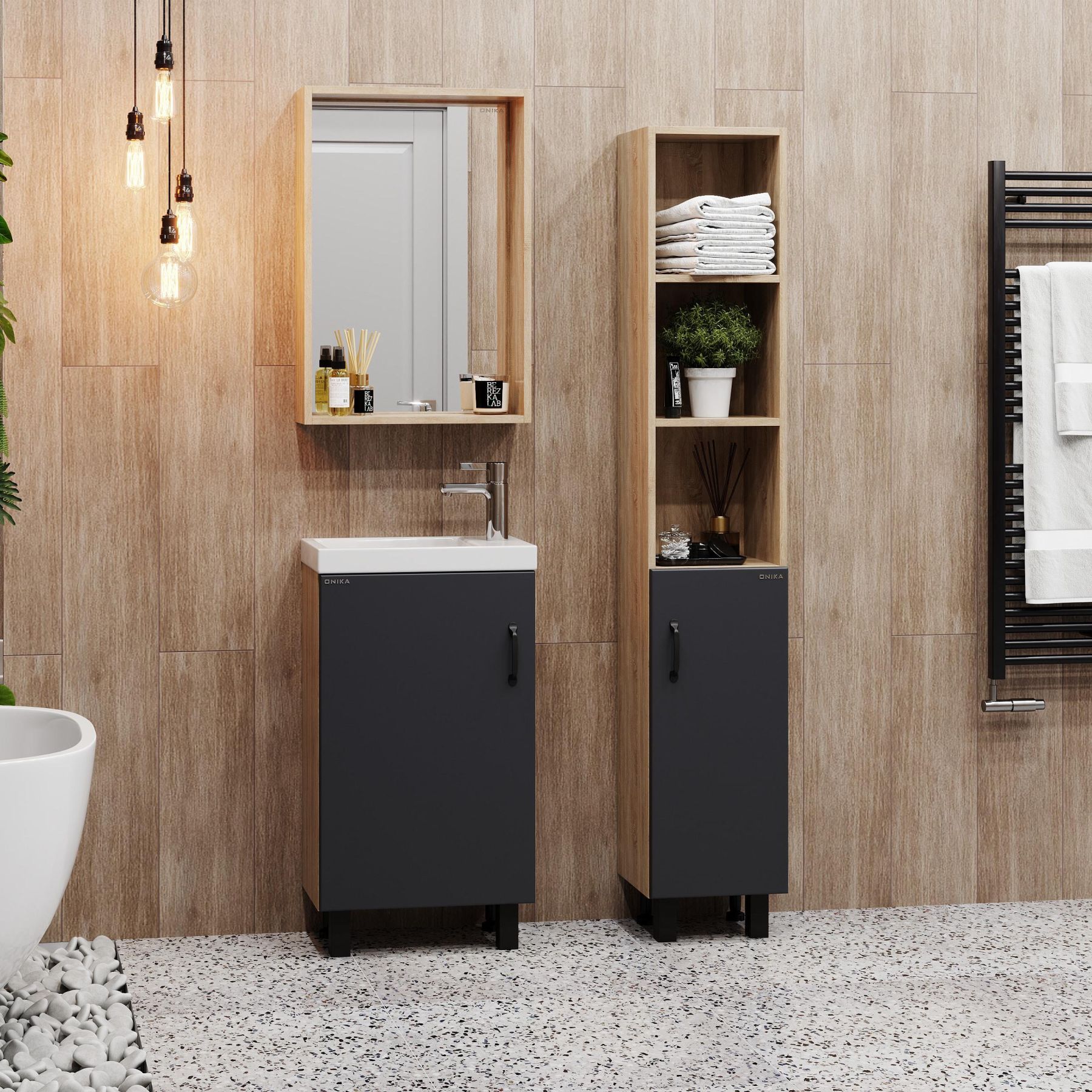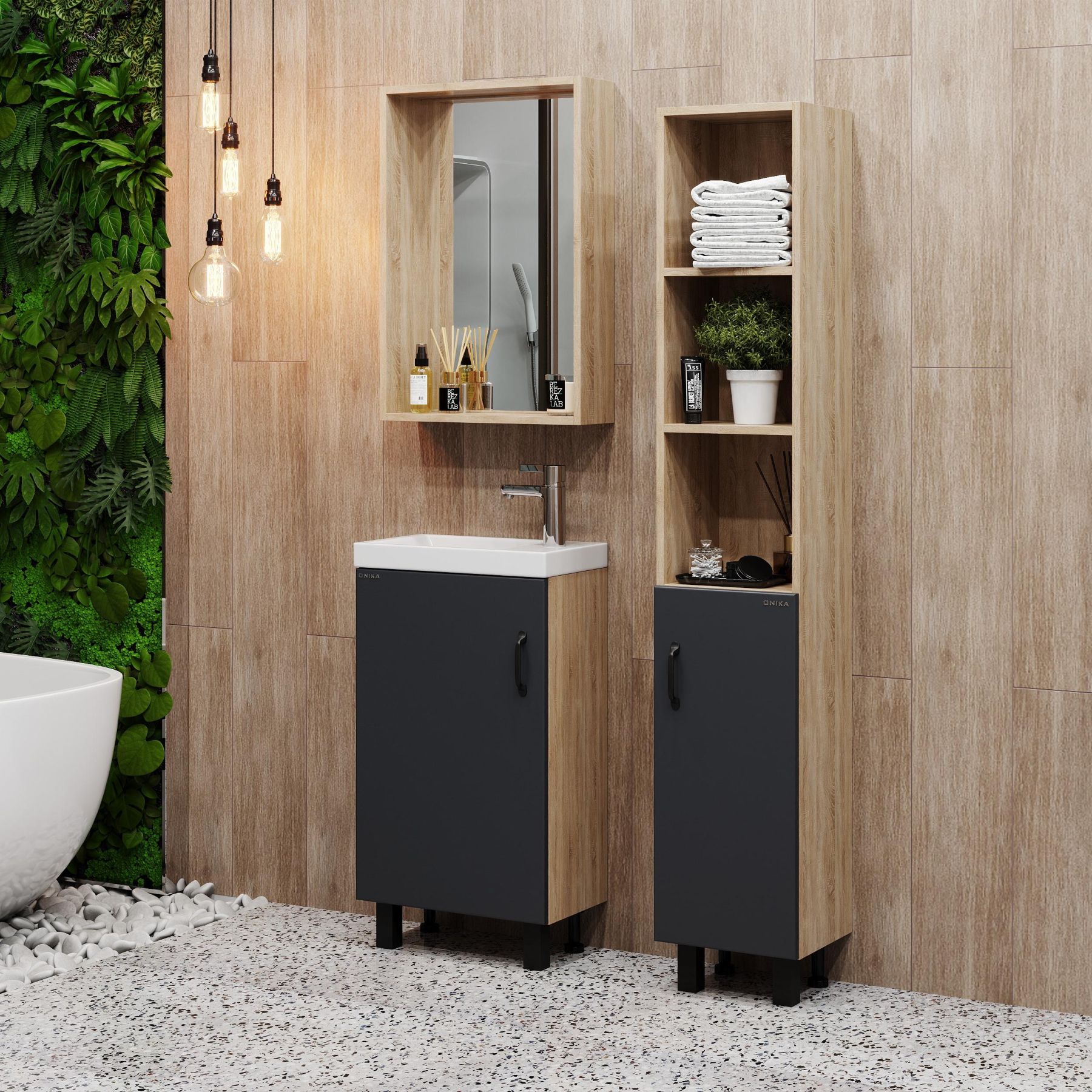 Зеркало в ванную комнату Onika ТИМБЕР 48 отражает современные тенденции в дизайне мебели для ванных комнат: минимализм с простыми и понятными формами, цвета дуба с роскошной текстурой, отсутствие лишних деталей.